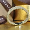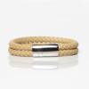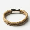 Beige Leather Double Braided Bracelet. Top grain cow leather featuring a durable stainless steel clasp for a secure fit. Each bracelet combines classic craftsmanship with modern design, making it the perfect accessory for any occasion. Available in various colors, these bracelets add a touch of sophistication to your everyday look.