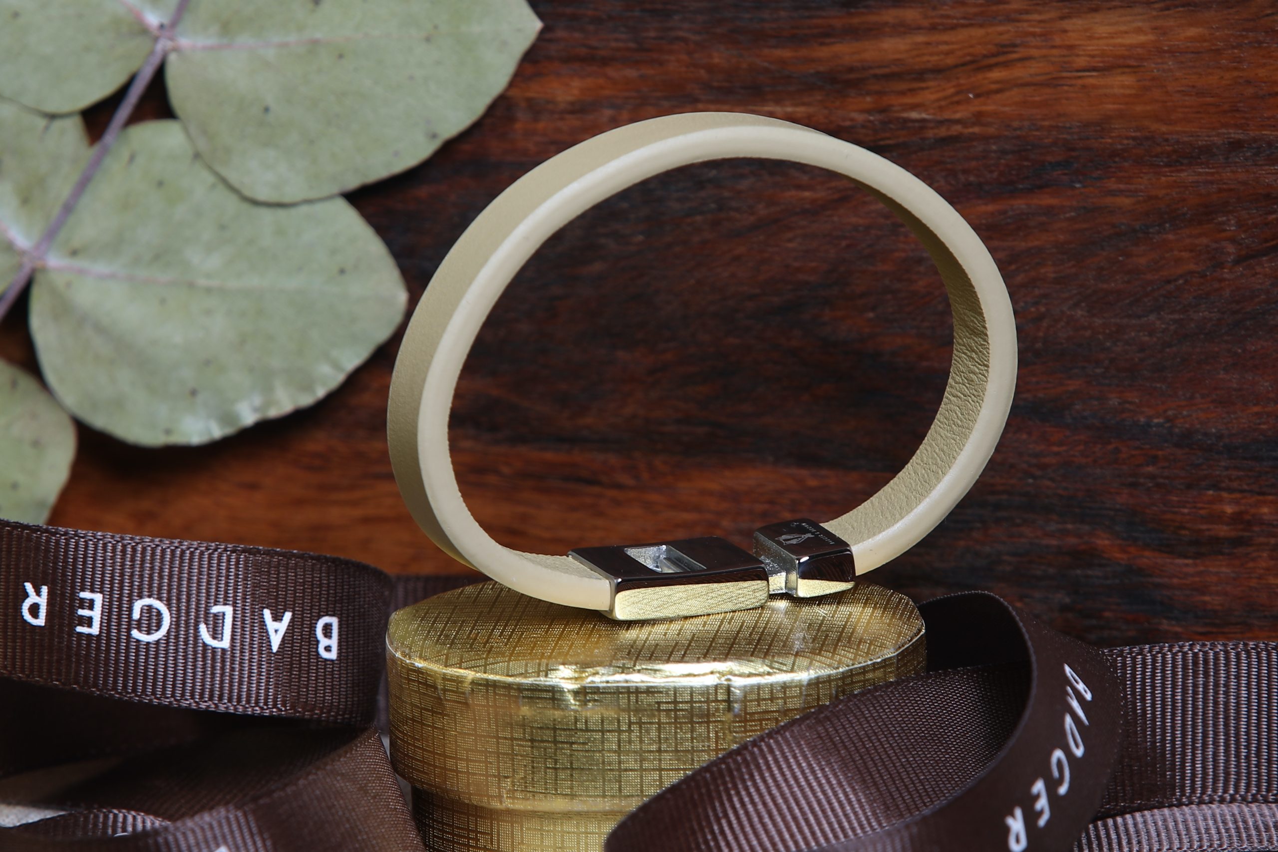 Beige Smooth Textured Leather Bracelet