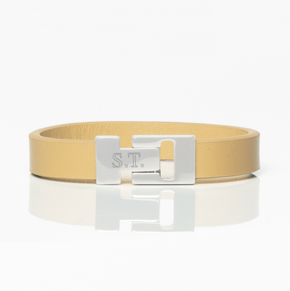 Beige Smooth Textured Leather Bracelet. This bracelet exemplifies the perfect fusion of elegance and durability, and offers a timeless design that complements any wardrobe. With attention to every detail, the bracelet combines tasteful style with lasting quality, providing a sophisticated and comfortable fit. It’s the ultimate accessory for those who appreciate the subtleties of luxury.