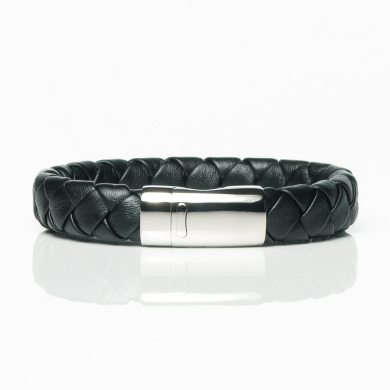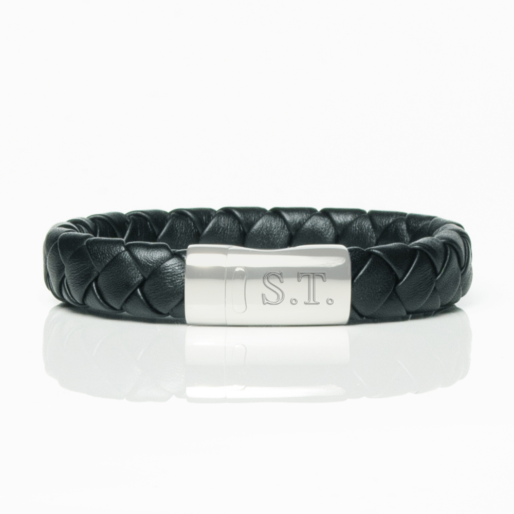 Black Bold Leather Braided Bracelet. Top grain cow leather featuring a durable stainless steel clasp for a secure fit. Each bracelet combines classic craftsmanship with modern design, making it the perfect accessory for any occasion. Available in various colors, these bracelets add a touch of sophistication to your everyday look.