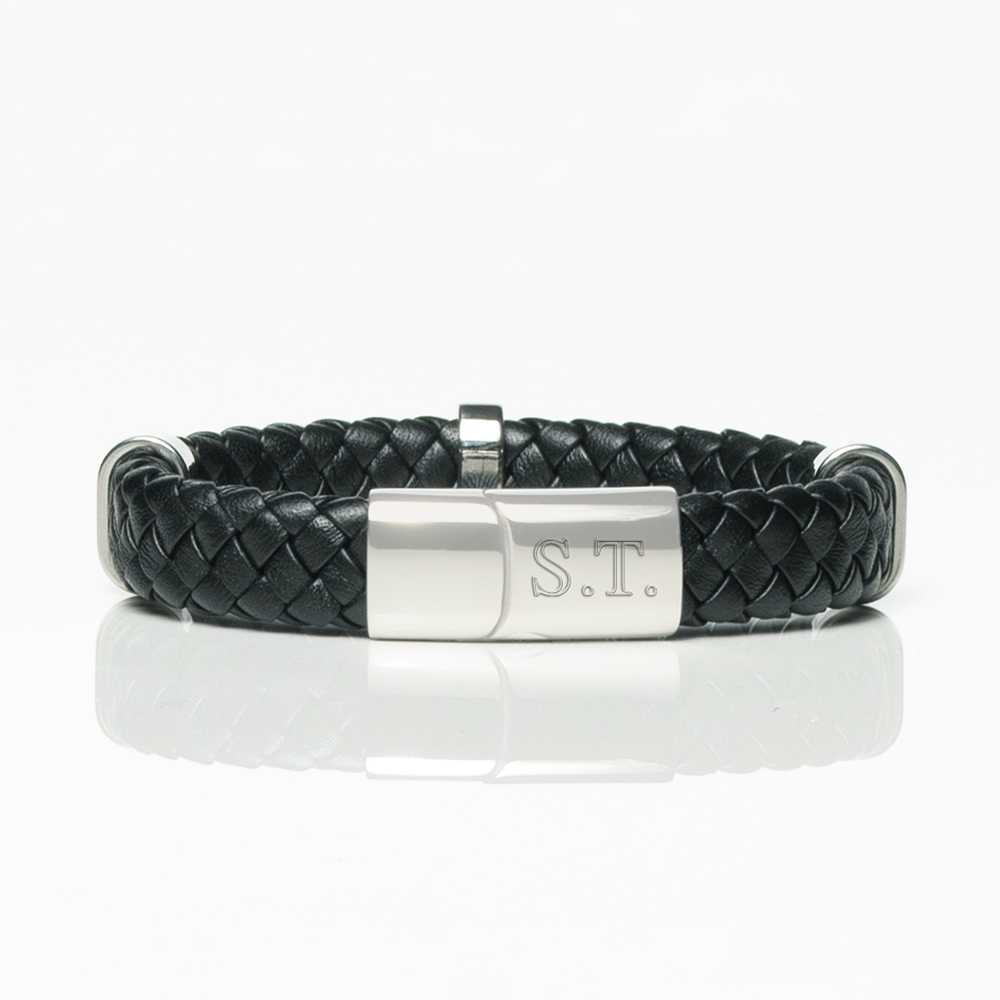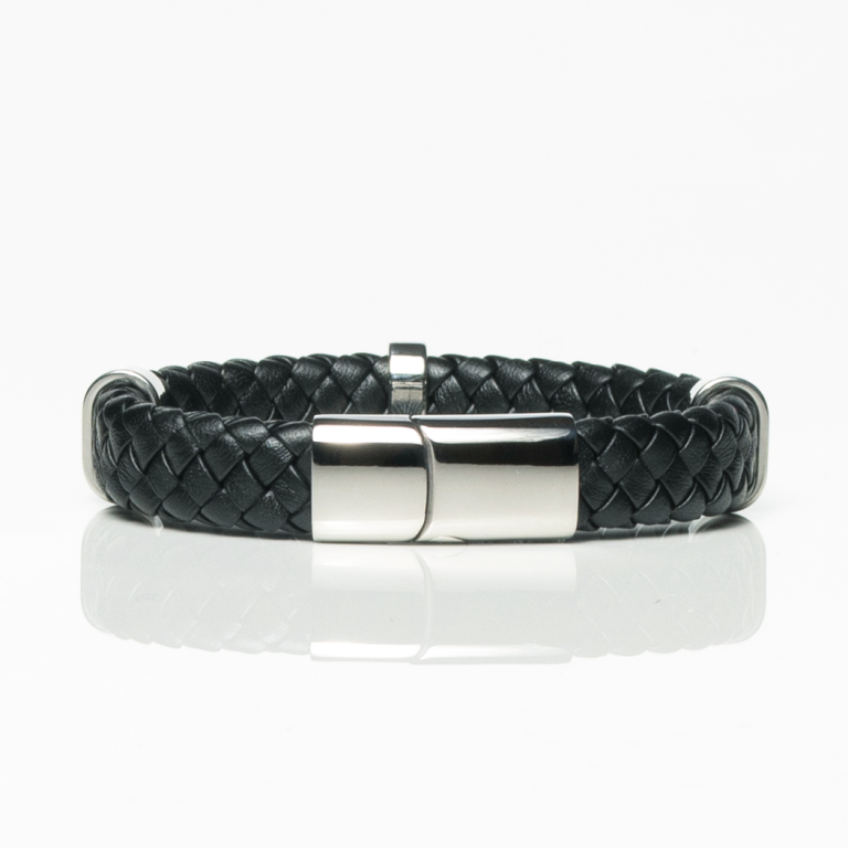 Black Leather Braided Bracelet With Loop Detail. Top grain cow leather featuring a durable stainless steel clasp for a secure fit. Each bracelet combines classic craftsmanship with modern design, making it the perfect accessory for any occasion. Available in various colors, these bracelets add a touch of sophistication to your everyday look.