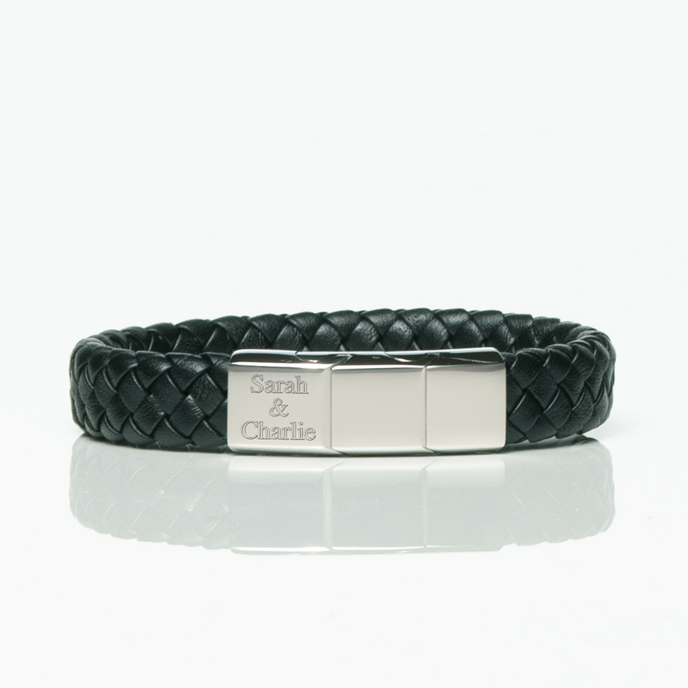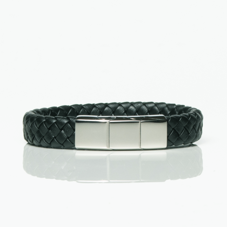 Black Leather Braided Bracelet With Long Clasp. Top grain cow leather featuring a durable stainless steel clasp for a secure fit. Each bracelet combines classic craftsmanship with modern design, making it the perfect accessory for any occasion. Available in various colors, these bracelets add a touch of sophistication to your everyday look.