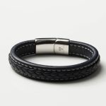Black Quilted Style Leather Bracelet. This bracelet exemplifies the perfect fusion of elegance and durability, and offers a timeless design that complements any wardrobe. With attention to every detail, the bracelet combines tasteful style with lasting quality, providing a sophisticated and comfortable fit. It’s the ultimate accessory for those who appreciate the subtleties of luxury.