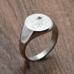 Engraved Initial Stainless Steel Signet Ring with Crystal. An elegant & understated design with a subtle Crystal that we’ve handcrafted to a very high standard. A product that will last the length of time and can be cherished as a personal gift.