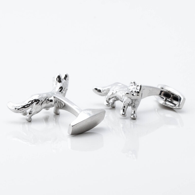These solid cufflinks are handcrafted to a very high standard and the design is highly detailed. These fox cufflinks are connected to a sturdy stem and our strongest clasp available.