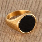 Gold Plated Onyx Stainless Steel Signet Ring