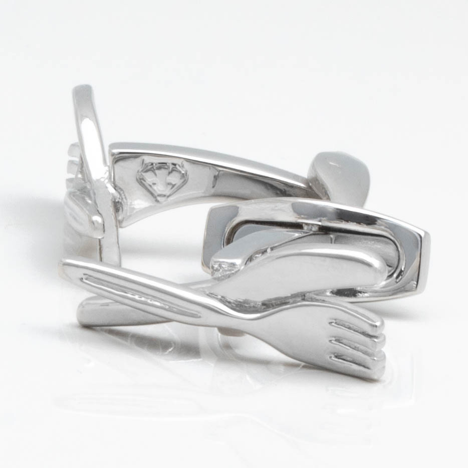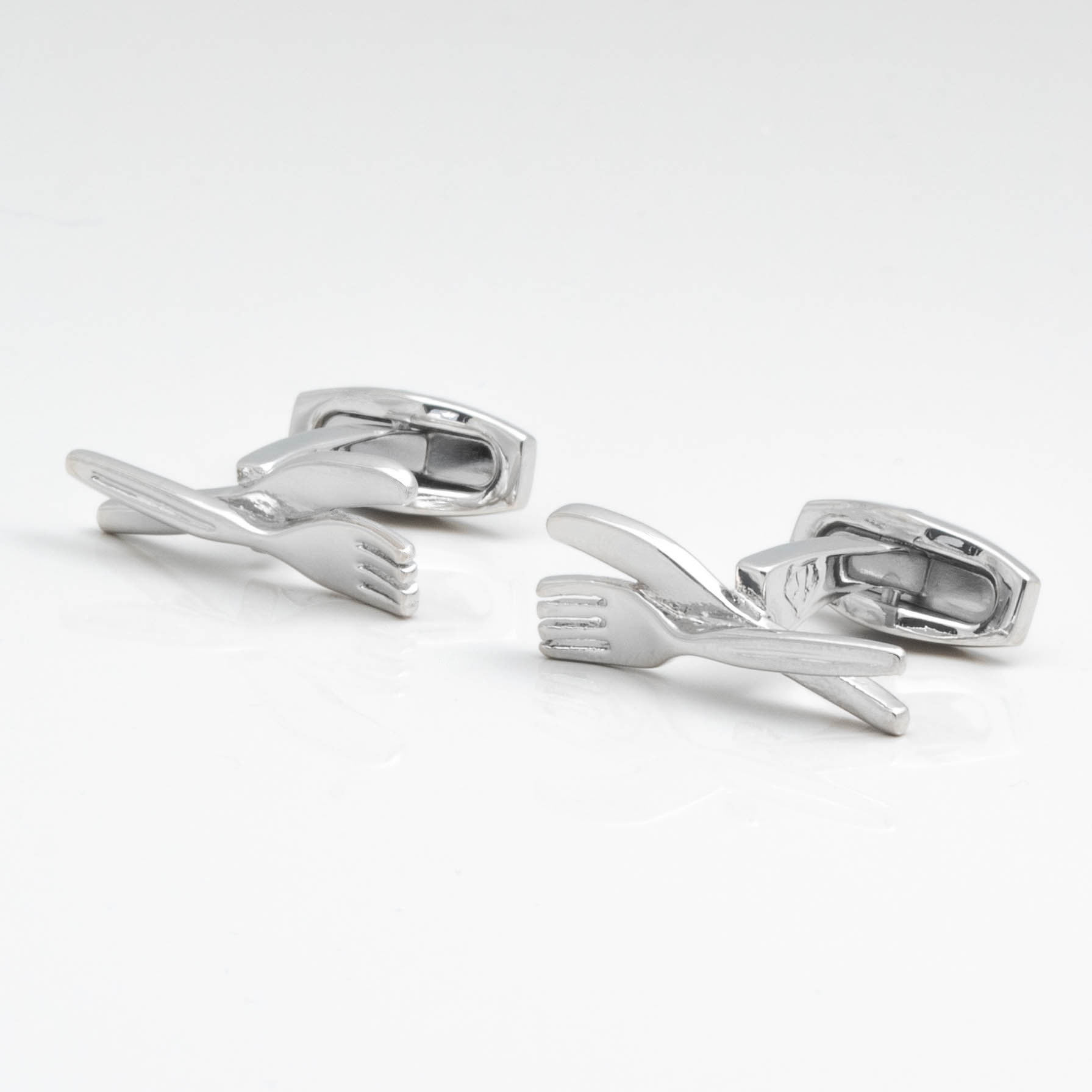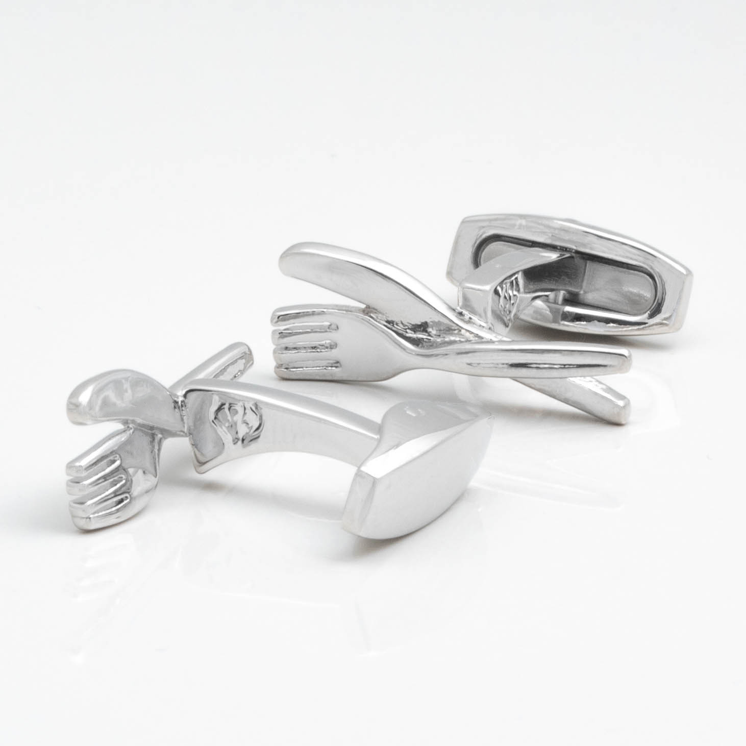 These solid cufflinks are handcrafted to a very high standard and the design is highly detailed. Made with rhodium these knife and fork cufflinks are connected to a sturdy stem and our strongest clasp available.
