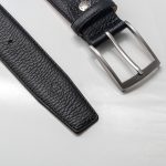 The Luxury Black Italian Grain Leather Belt. Expertly handcrafted in Italy, exemplifies the perfect fusion of elegance and durability. Made from the finest premium leather, this belt offers a timeless design that complements any wardrobe. With attention to every detail, the Belt combines tasteful style with lasting quality, providing a sophisticated and comfortable fit. It’s the ultimate accessory for those who appreciate the subtleties of luxury, adding a touch of Italian craftsmanship to your ensemble.