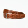 The Luxury Cognac Italian Crocodile Print Leather Belt. Expertly handcrafted in Italy, exemplifies the perfect fusion of elegance and durability. Made from the finest premium leather, this belt offers a timeless design that complements any wardrobe. With attention to every detail, the Belt combines tasteful style with lasting quality, providing a sophisticated and comfortable fit. It’s the ultimate accessory for those who appreciate the subtleties of luxury, adding a touch of Italian craftsmanship to your ensemble.