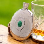 Luxury Compact Hipflask With Malachite Stone. An elegant & understated design that we’ve handcrafted to a very high standard. A product that will last the length of time and can be cherished as a personal gift.