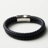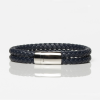 Navy Leather Double Braided Bracelet. Top grain cow leather featuring a durable stainless steel clasp for a secure fit. Each bracelet combines classic craftsmanship with modern design, making it the perfect accessory for any occasion. Available in various colors, these bracelets add a touch of sophistication to your everyday look.
