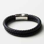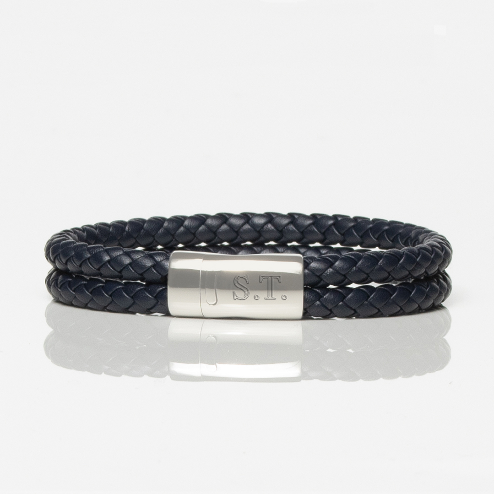Navy Leather Double Braided Bracelet