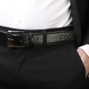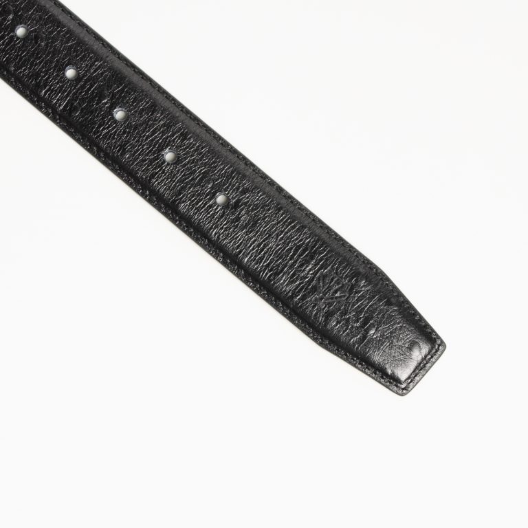 Ostrich-Style Patterned Black Leather Belt. This belt exemplifies the perfect fusion of elegance and durability, and offers a timeless design that complements any wardrobe. With attention to every detail, the belt combines tasteful style with lasting quality, providing a sophisticated and comfortable fit. It’s the ultimate accessory for those who appreciate the subtleties of luxury.