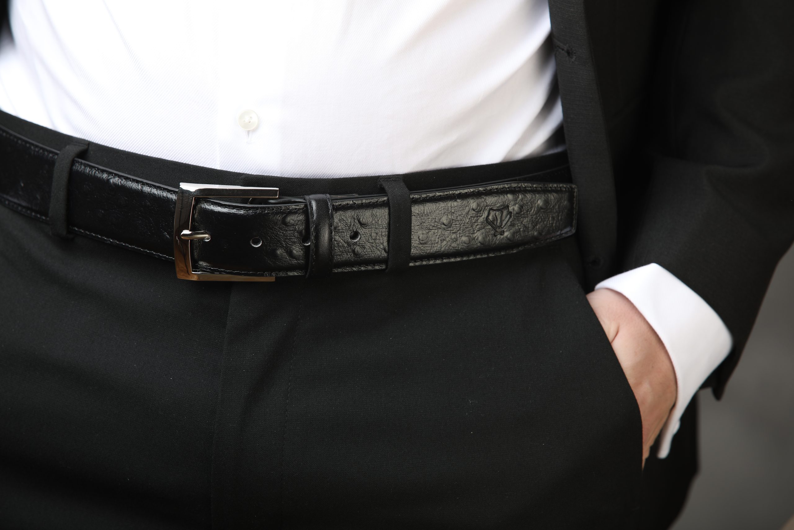 Ostrich-Style Patterned Black Leather Belt