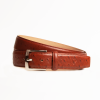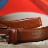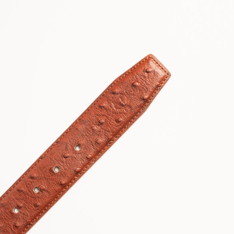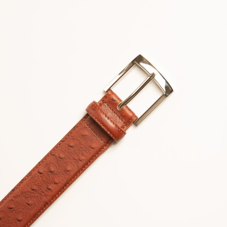 Ostrich-Style Patterned Tan Brown Leather Belt. This belt exemplifies the perfect fusion of elegance and durability, and offers a timeless design that complements any wardrobe. With attention to every detail, the belt combines tasteful style with lasting quality, providing a sophisticated and comfortable fit. It’s the ultimate accessory for those who appreciate the subtleties of luxury.