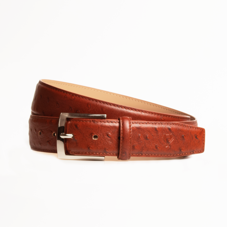 Ostrich-Style Patterned Tan Brown Leather Belt