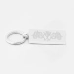 Metal – Brass keyring with rhodium plating. We use a polished rhodium finish