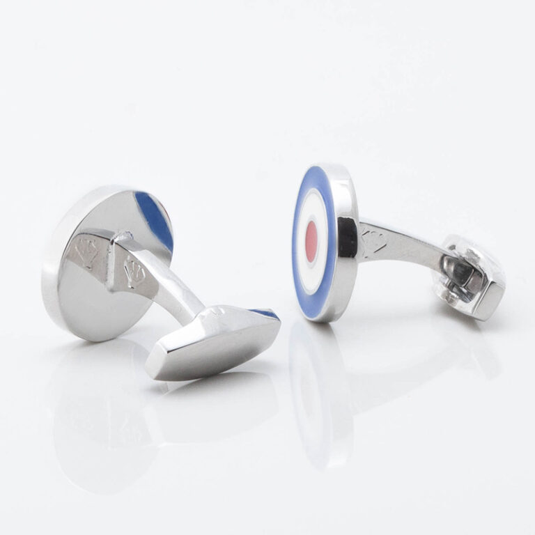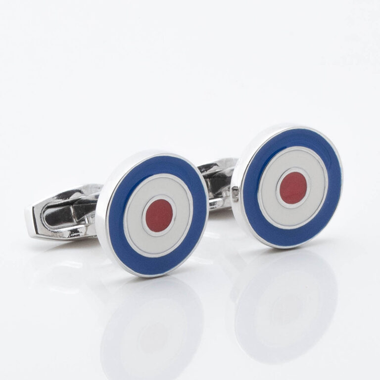 RAF cufflinks. Perfect for anyone with an interest in aviation and an ideal gift to personalise. The Roundel has been used by the RAF since the First World War; to be able to recognise their planes from the ground, using the Red White and blue as a target rather than the Flag. It is Instantly recognisable as The Symbol representing the RAF.