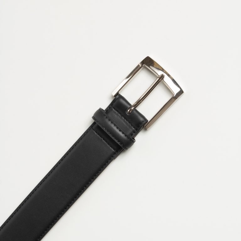 The Smooth Textured Black Leather Belt. This belt exemplifies the perfect fusion of elegance and durability, and offers a timeless design that complements any wardrobe. With attention to every detail, the belt combines tasteful style with lasting quality, providing a sophisticated and comfortable fit. It’s the ultimate accessory for those who appreciate the subtleties of luxury.