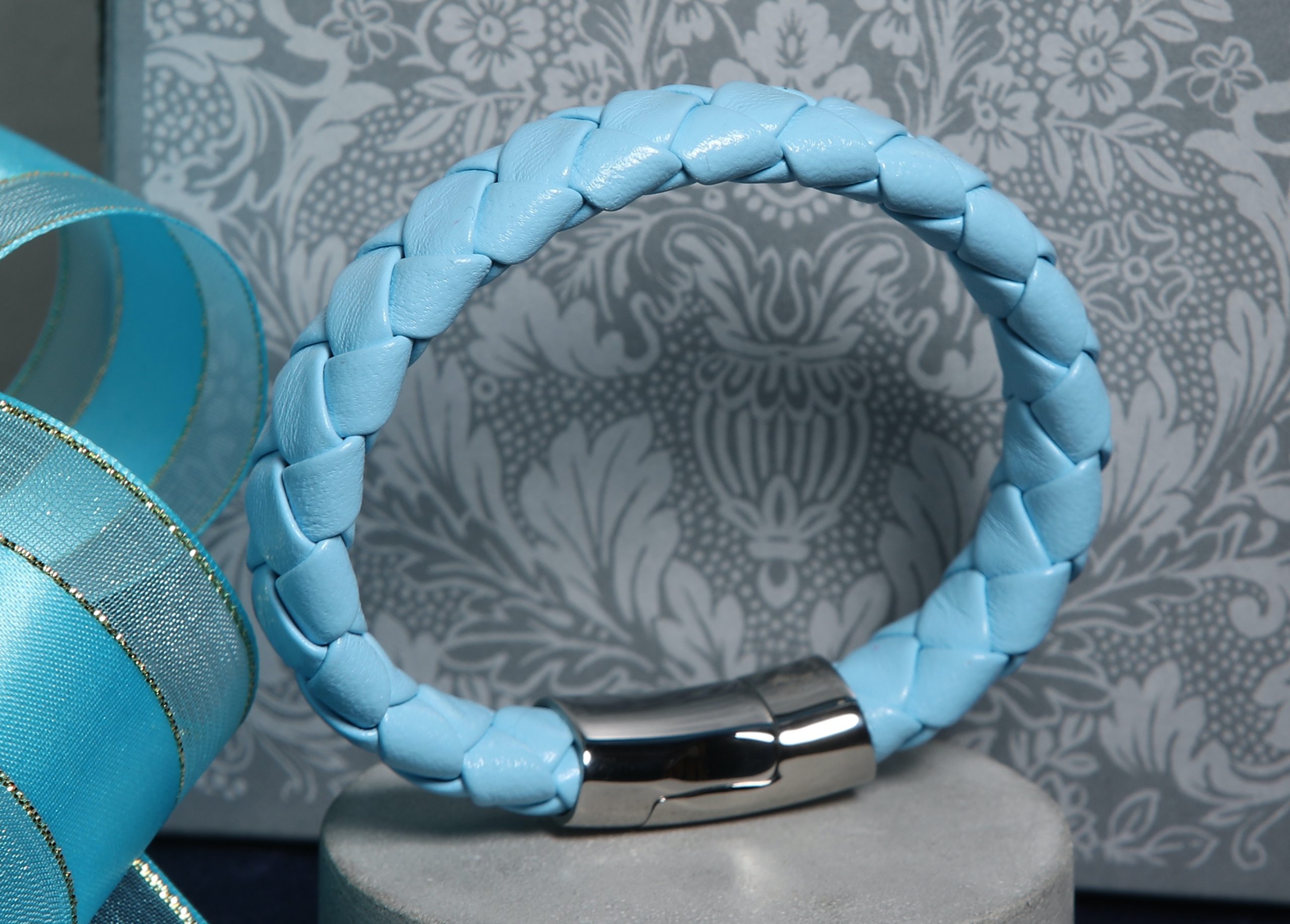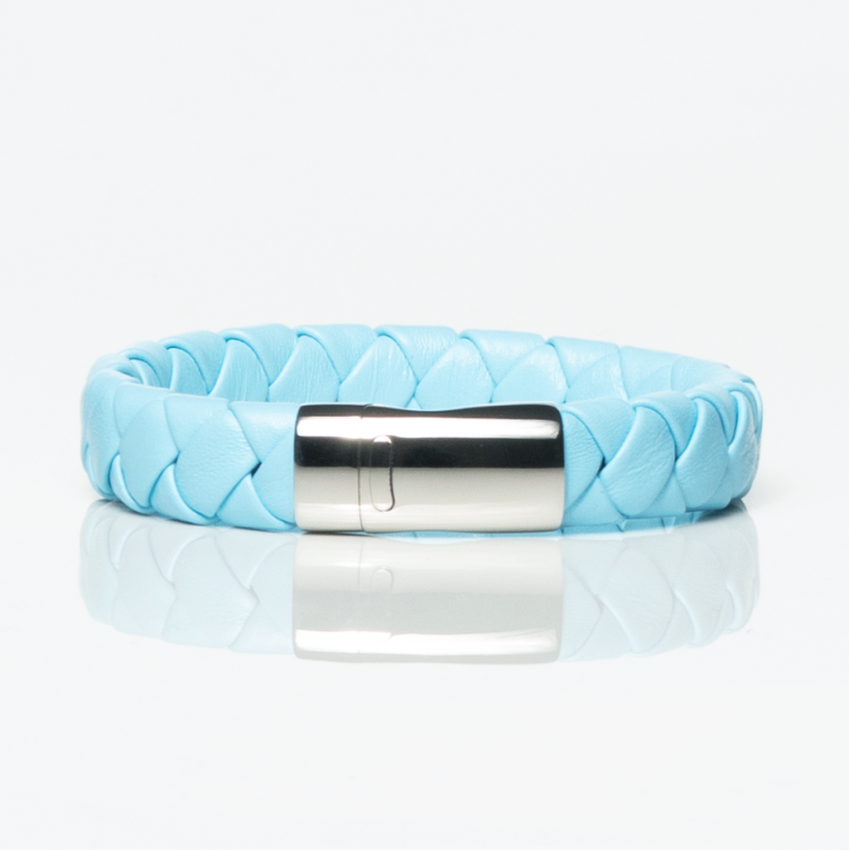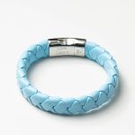 Steel Blue Bold Leather Braided Bracelet