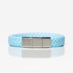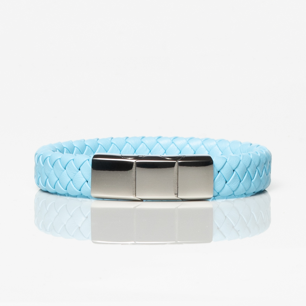 Steel Blue Leather Braided Bracelet With Long Clasp