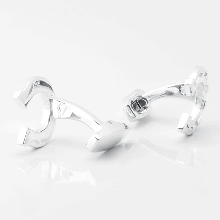 These solid cufflinks are handcrafted to a high standard and the design is highly detailed. Horseshoe cufflinks that are connected to a sturdy stem and our strongest clasp available. A product that will last the length of time and can be cherished as a personal gift. We’ve used high quality silver and they’re hallmarked.