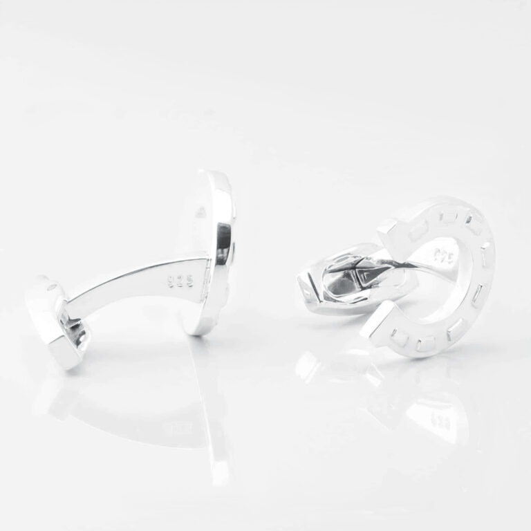 Sterling silver horseshoe cufflinks add a plush touch to any shirt, and they’ll bring you luck!