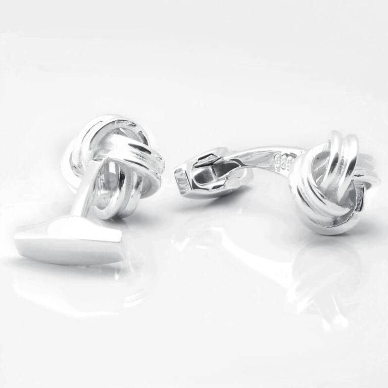 Sterling silver knot cufflinks. These Sterling Silver double knot look stunning on any shirt, classically elegant and understated. Set on a strong stem with a torpedo clasp