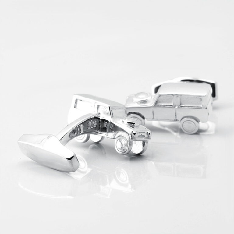 Sterling silver Land Rover cufflinks add a novelty yet plush touch to any shirt.