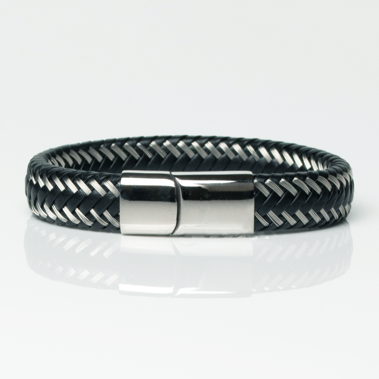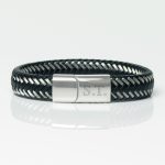 Two-Tone Black Woven Leather Bracelet. This bracelet exemplifies the perfect fusion of elegance and durability, and offers a timeless design that complements any wardrobe. With attention to every detail, the bracelet combines tasteful style with lasting quality, providing a sophisticated and comfortable fit. It’s the ultimate accessory for those who appreciate the subtleties of luxury.